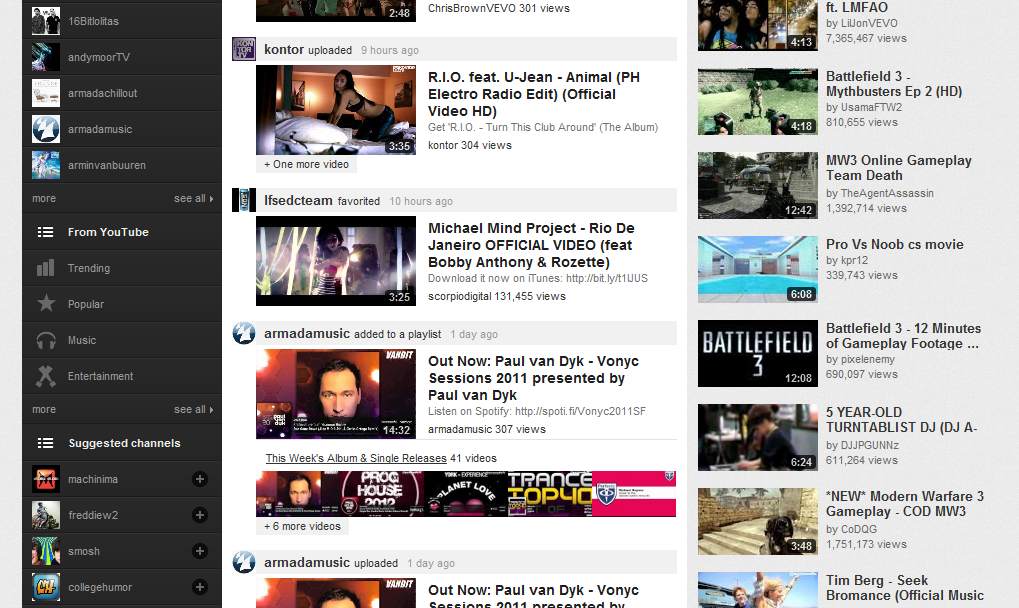 Hyperlinks not working at all, except for "My Channel" since it's a real hyperlink and not a JS/AJAX action trigger like the others.