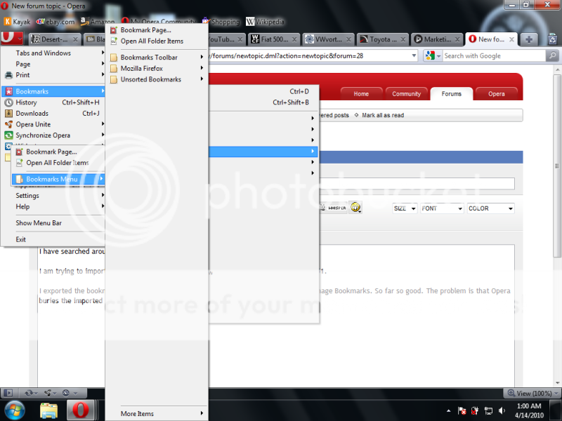 I have searched around and found few answers.I am trying to import my bookmarks and bookmarks toolbar from Firefox to Opera 10.51.