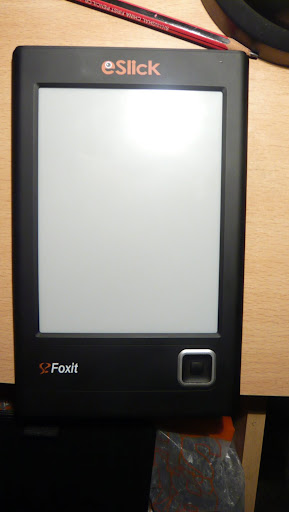 经过了一个月的等待,其间发了不知道多少个邮件询问订单的情况,甚至看到一款更先进的产品出现还动了退订的念头,不过最终在收到确认收货地址的电话之后,又等待了两天的时候,终于拿到了我的eSlick。打开包装盒,简单的配置和一个略显单薄的机身,似乎论坛里面的照片把它放大了,第一眼看到的时候觉得比自己想象地小很多,而且很薄,拿在手里就跟拿着一本薄薄的笔记本一样(不是电脑)。鉴于之前看到的前辈的意见,拼命忍着下个开机的欲望,把它插上电源充个小时的电之后,充电时间比我想的长多了,才怀着期待的心情按下了开机键。新奇的畫面出現了,E-ink的顯示效果確實不是TFT能夠相比的,字體的細膩和視覺的清爽一掃在手機屏幕上看書的疲勞感,雖然沒有背光,但是真的是那種跟紙張顯示相媲美的效果,只是翻頁確實如傳說中的那樣慢,比我想像得還要慢很多,而且那種瞬間的反白也讓人有點不爽,還好適應之後減慢翻頁按鍵的速度,還是能夠接受的。認真閱讀了說明書,電腦裏面裝好PDF Creator,反復嘗試了多種字體(之間還自己摸索出了重啟之後才能顯示新字體的操作方法),這下我終於能夠體驗體驗新玩具的魅力了。屏幕太大,特別是聽到有人碎掉的噩耗,第一天裝在包裡趕公車都擔驚受怕的,立馬上淘寶買了個翰林的皮套裝上,心裏面一下子就踏實了。