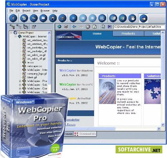 WebCopier Pro 4.6WebCopier Pro™, based on award-winning WebCopier™ for Windows product, is the most powerful version of our offline browsers product line.