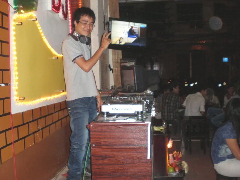 Nguyên cả ngày nắng nóng quá, chỉ chui vào KS nghỉ đến chiều bắt đầu ra trận đây , trước tiên là ra quán nhậu Phá Lấu do CUTIN chỉ huy , do quán hơi đông và nhỏ nên không tiện tác nghiệp lắm, mình vào thẳng quán CAPHE DJ bạn của CUTIN nhá : thấy chữ gì hông nè ?