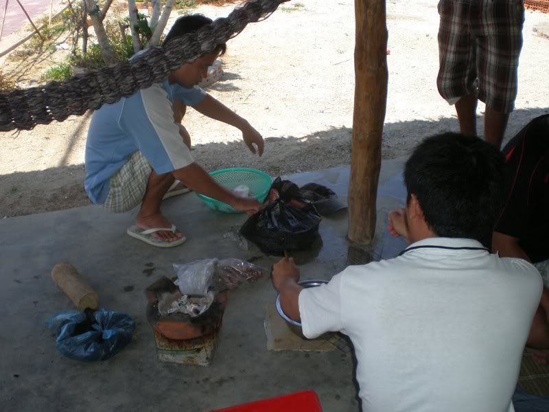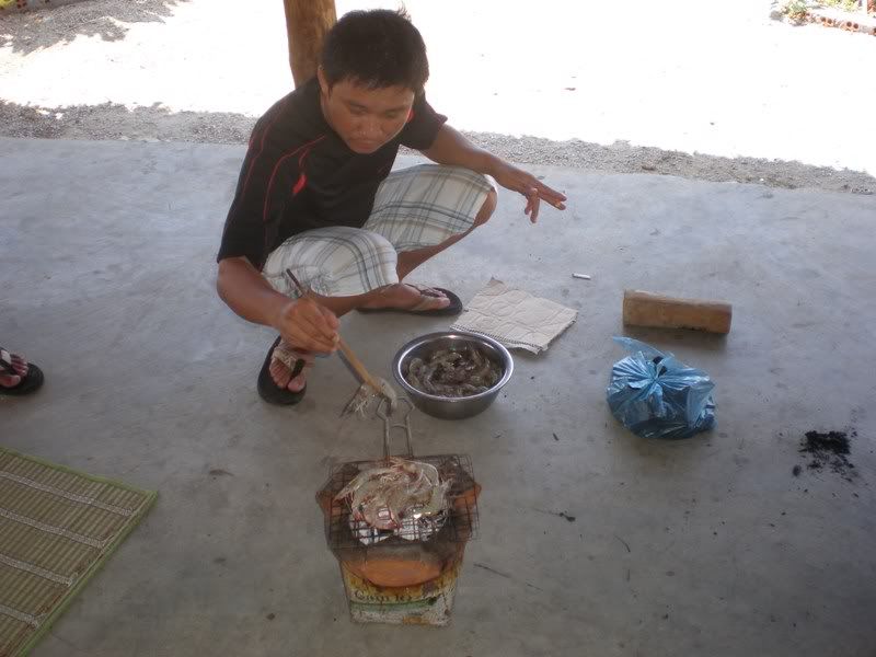DJ CHAPTER đang nướng tôm cho anh em