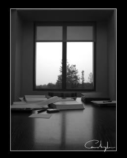 Đang ngồi group study trong study room ở library, vén màn nhìn ra cửa sổ, trời chuyển mưa tối đen, làm mờ cả tầm nhìn, mờ cả những cây thông, cây phong và cả những ngọn đồi xa xa. Tự nhiên muốn chụp hình, mở cặp lấy máy đi lòng vòng chụp tán loạn. (November tui thường quởn, bà kon thông cảm. Này gọi là hiện tượng bấn loạn mùa mưa. )