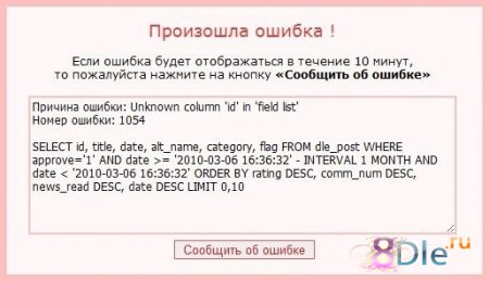 Далее: http://8dle.ru/hacks/2251-mysql-oshibka-v2.html dle - шаблоны для dle