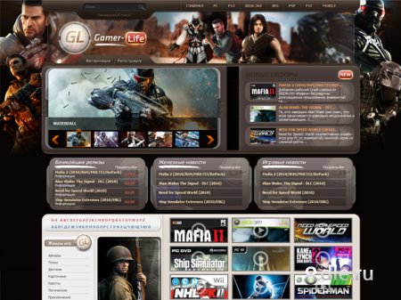 Шаблон заточен именно под игровую тематику. Исполненный в темных коричневых цветах. Специально для шаблона были разработаны такие модули: большой слайдер, новые обзоры, нижний слайдер (задумывался как вывод обоев), уменьшенная картинка в краткой новости, и вывод новых видео. Они не требуют установки.