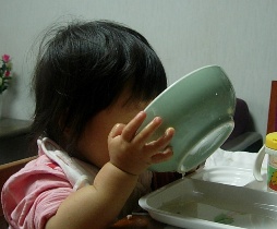 - Kém kỹ năng nuốt nên đến lớn vẫn ăn chậm: Việc ăn cháo quá lâu còn dẫn đến một tai hại nữa là làm họng bé chỉ quen nuốt những đồ nhuyễn, kém nuốt vật thô. Vì thế ngay cả khi đã lớn, đã ăn được cơm nhưng vẫn ăn chậm. Nhai mãi mới nuốt được. Bằng chứng sống là Ổi. Ổi đã 5 tuổi. Hôm ăn cơm ở Yochien, đúng bữa Kyusoku (ăn theo suất của trường), bữa mà bé nào cũng ăn giống bé nào mẹ mới có điều kiện so sánh. Ổi hôm ấy có mẹ ngồi bên, lại khích tướng liên tục vì bạn Yoshike-kun ăn cực nhanh. Ổi ăn ngoan lắm, cố gắng lắm, nhưng vẫn chậm nhất lớp. Bạn Yoshike chỉ ăn khoảng 10-15 phút, các bạn khác khoảng 20-25 phút, Ổi phải mất 30 phút. Ổi mếu máo: con đã cố gắng lắm mà sao vẫn chậm. Đến giờ mẹ mới ngộ ra: Cho dù Ổi không nói chuyện, cho dù ăn liên túc, xúc thìa mới ngay, không ngồi ngâm nga, thì vẫn chậm. Vì Ổi nhai để nuốt rất lâu, các bạn khác nuốt được nhanh hơn nhiều. Nói thêm là Ổi tâp ăn cơm từ 1 tuổi rưỡi, 2 tuổi thì hoàn toàn ăn cơm theo bố mẹ – theo kiểu VN thì cũng là bình thường, không phải dạng kém cỏi chậm tiến gì lắm. Ổi cũng không mắc chứng ngậm, không phải ăn rong, ngồi đàng hoàng từ bé, nói chung về VN còn thuộc diện ngoan, nhưng thực sự ở đây thấy con người ta mới thấy mình quá vất vả. Khổ cả Ổi nữa, vì bữa ăn không vui, cứ bị nhắc nhở ăn chậm.