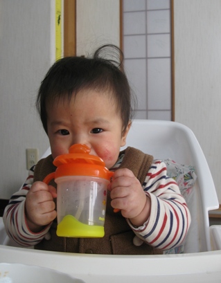 (Về kinh nghiệm tập cho uống ống hút: Mấy ngày đầu Mít chỉ biết cắn cắn chơi chơi, thỉnh thoảng mút 1 cái, chẳng may có tý nước vào miệng. Nhưng bữa nào mẹ cháu cũng dọn ra, cho Mít quen dần. Khoảng 1 tuần là Mít hiểu, trong cái cốc đó có nước. Nếu mút thì sẽ được nước vào mồm)