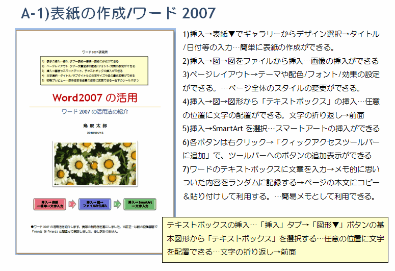 画像(1)▼クリックで拡大できます…「表紙の作成」/ワード2007↓
