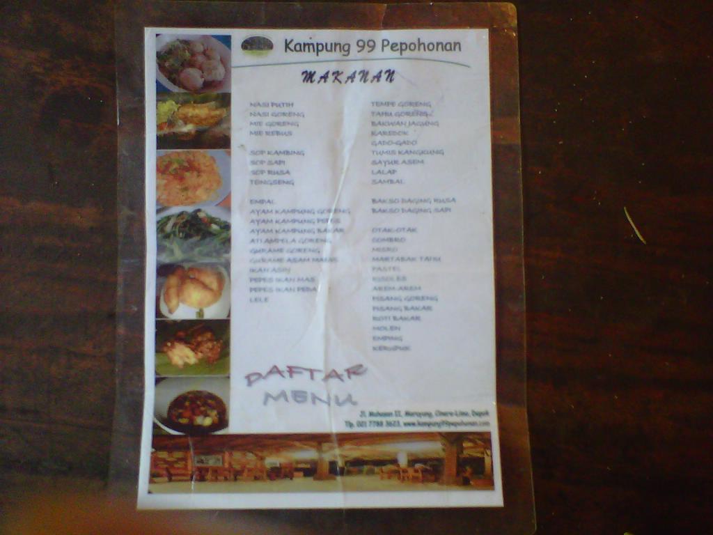 Alamat kampung 99 Pepohonan: Jl. KH. Muhasan II, Kelurahan Meruyung, Kecamatan Limo, Depok 16515 (seberang Mesjid Kubah Mas Dian Al Mahri)